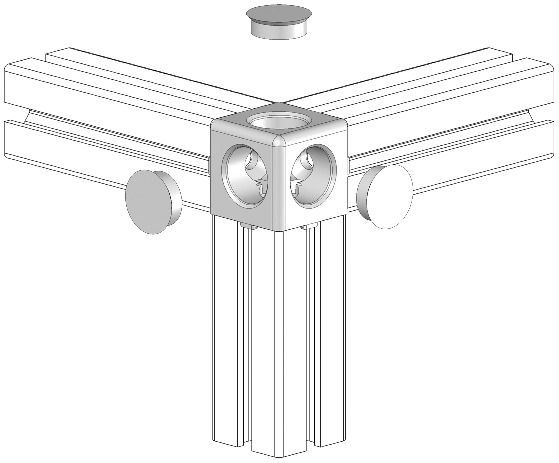 Hoekverbinder 3D voor profiel 40x40 met afdekdoppen - AC 8-40