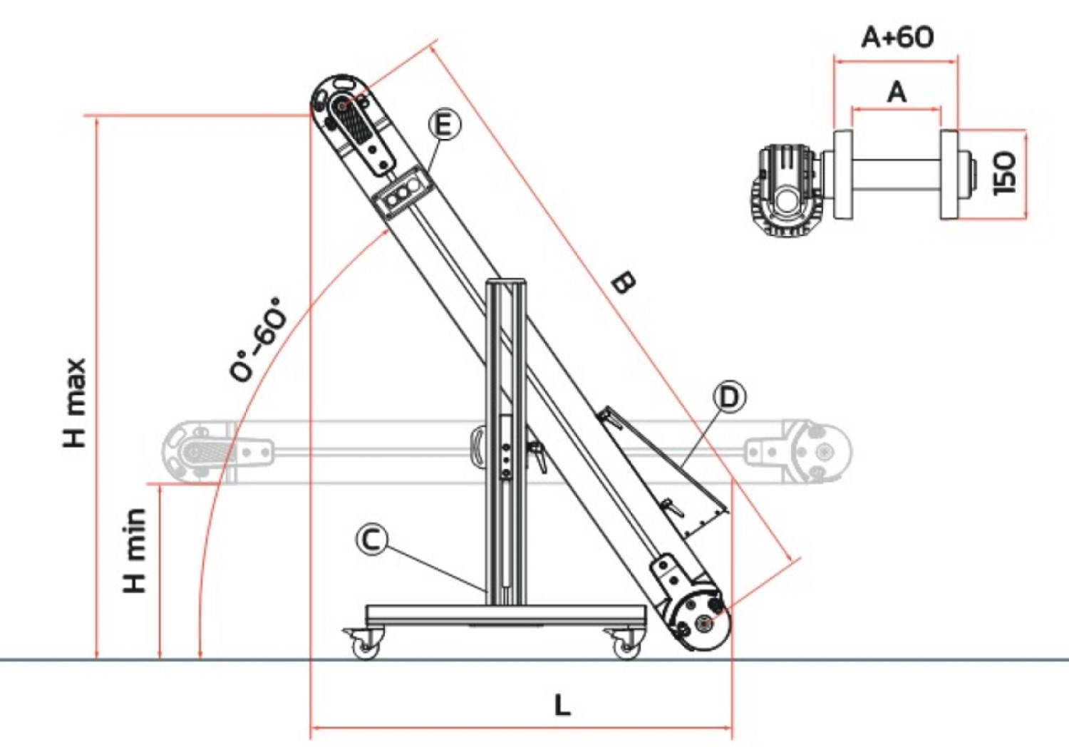 Breedte A: 150 - 250 - 350 - 450 - 550 mm